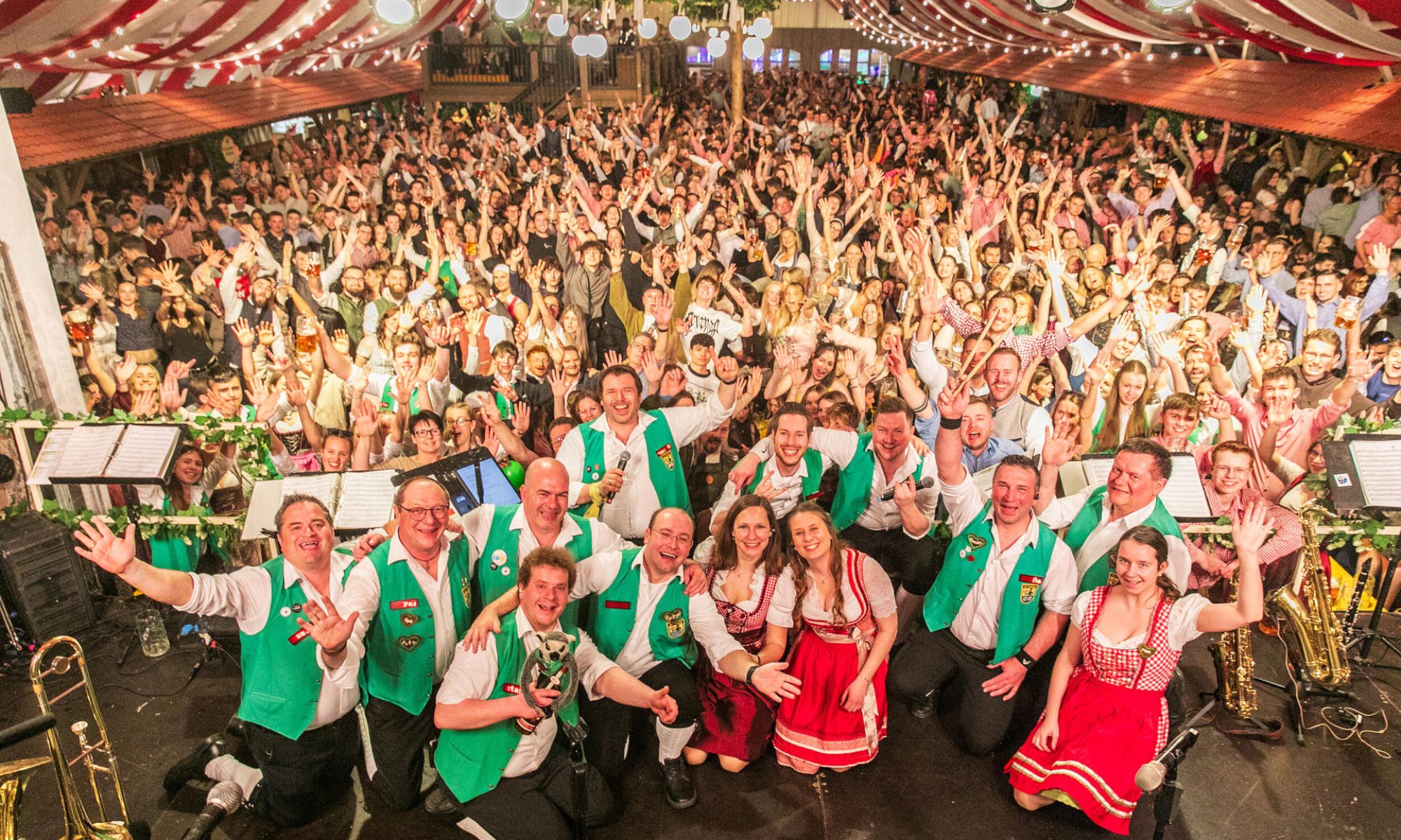 Weiter geht es mit Jojo. - Jojo unser Frontmann und Sänger 🎤 ist unser einziges Stadtkind in der Kapelle. Als waschechter Würzburger ist somit Kiliani für ihn ein echtes Heimspiel. 🎡 Bevor es ihn auf die große Bühne zog, sammelte er jedoch seine ersten musikalischen Erfahrungen mit den Kochtöpfen in der Küche und den Sesseln im Wohnzimmer. Eigentlich wollte er immer Schlagzeuger werden und begleitete jede Musiksendung im Fernsehen, zum Leidwesen seiner Eltern, lautstark. 😂 Da jedoch das Schlagzeug in einer Stadtwohnung nicht das geeignete Instrument war, viel die Instrumentenwahl nach Blockflöte und Orfinstrumenten auf das Akkordeon. 🪗
